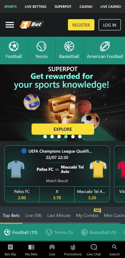 Indian bettors get a huge collection of sports and casino games on 1bet. Global highlights and local classics, top odds, broad markets, and thrilling Live play!